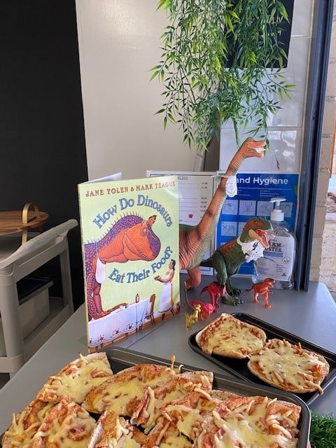 Following on with the Book Week theme the canteen got into the spirit of the event with 'dinosaur' foods based on the very aptly named book 'How Do Dinosaurs Eat Their Food' by Jane Yolen & Mark Teague.